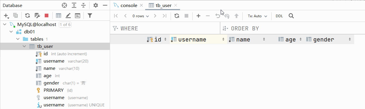 - 在数据库下再去创建数据表(一个数据库下可以创建多张表)