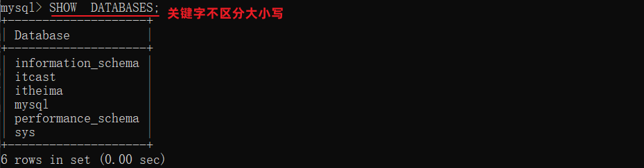3、MySQL 数据库的 SQL 语句不区分大小写。