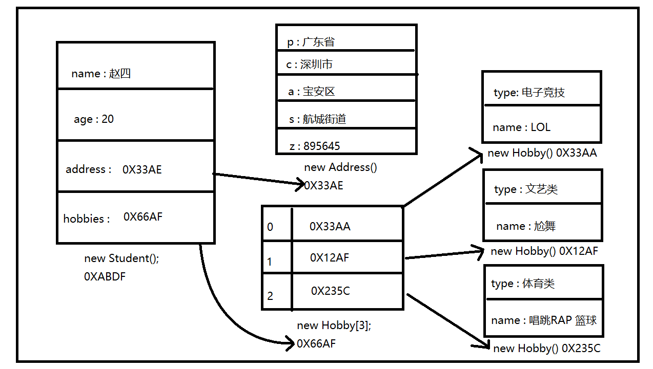 3.将堆中的地址赋值给栈中的引用 完成对象的创建